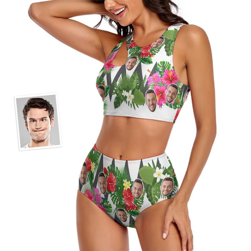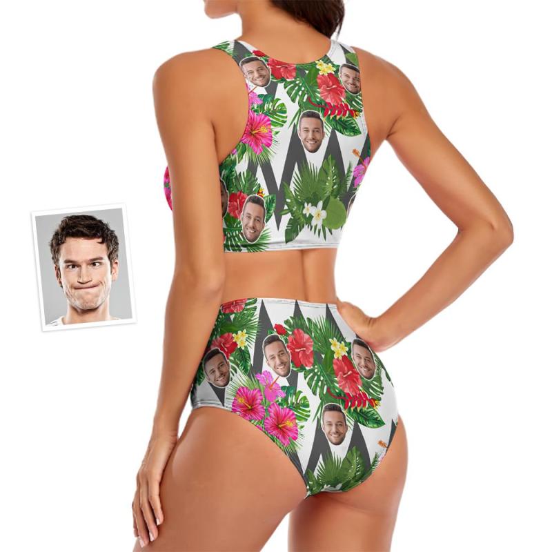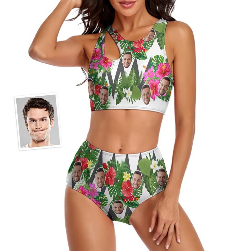 Custom Face Women's Flowers Ripple Two-piece Swimsuit