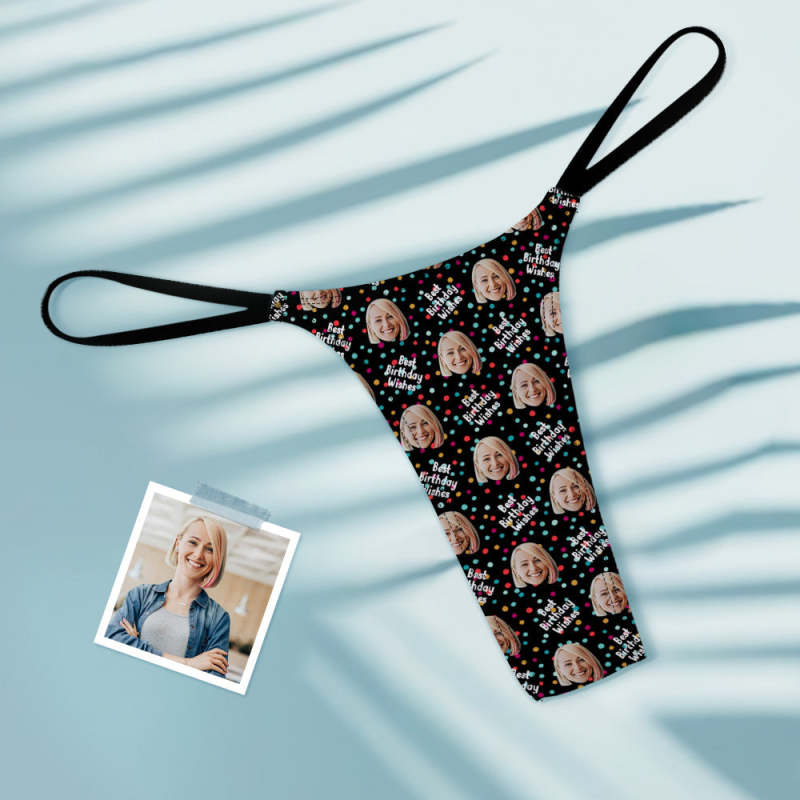 Custom Face Women's Tanga Best Birthday Wishes Thong
