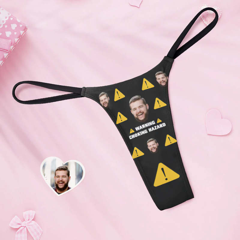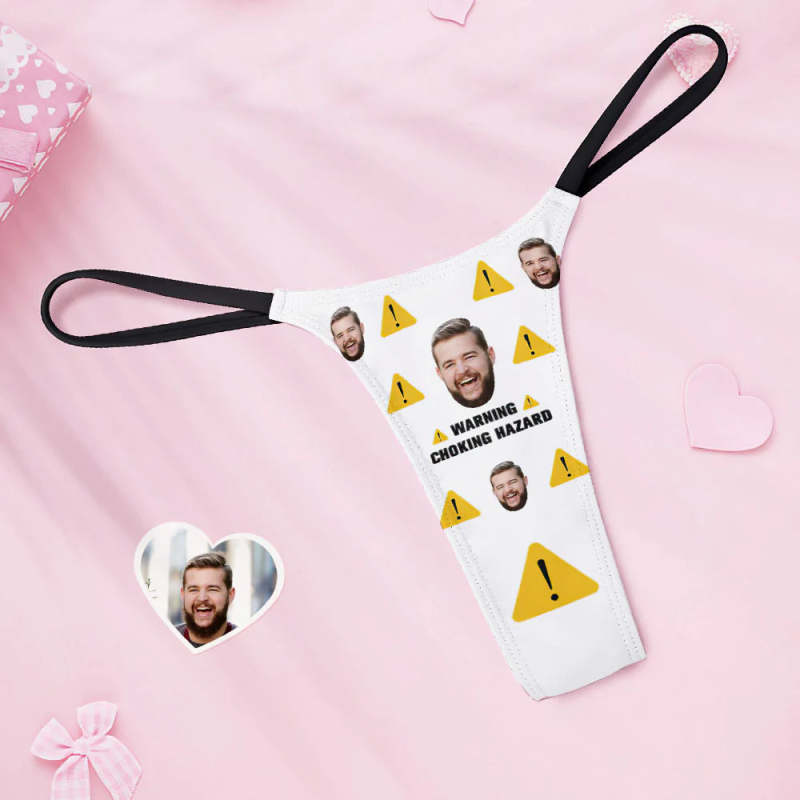 Custom Face Women's Tanga Thong Choking Hazard Warning Valentine's Day GIft