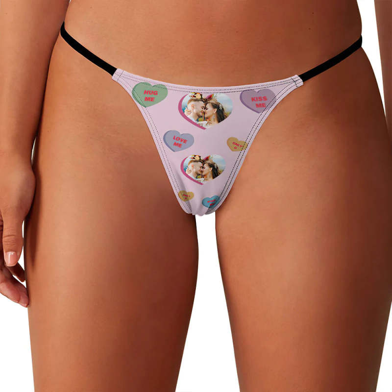 Custom Face Women's Tanga Thong Conversation Hearts Personalized Valentine's Day Thongs
