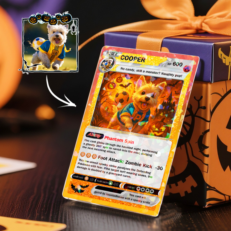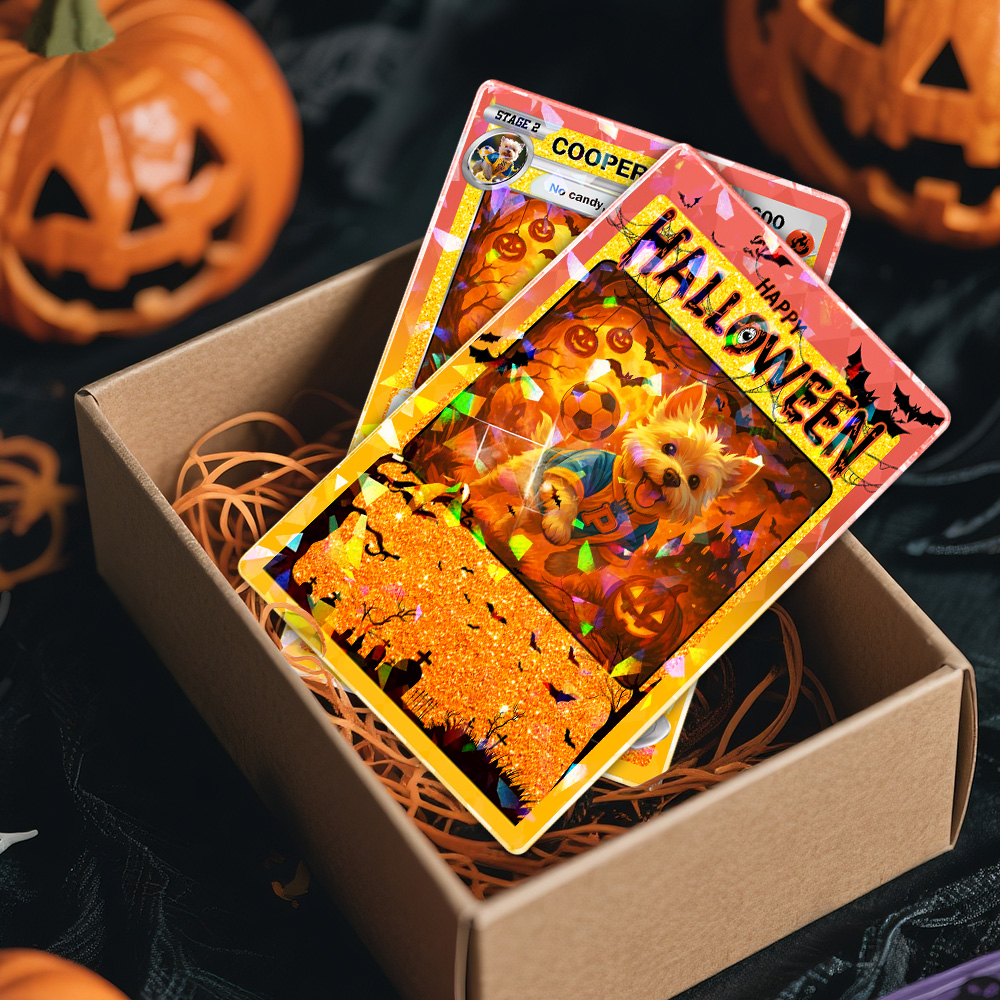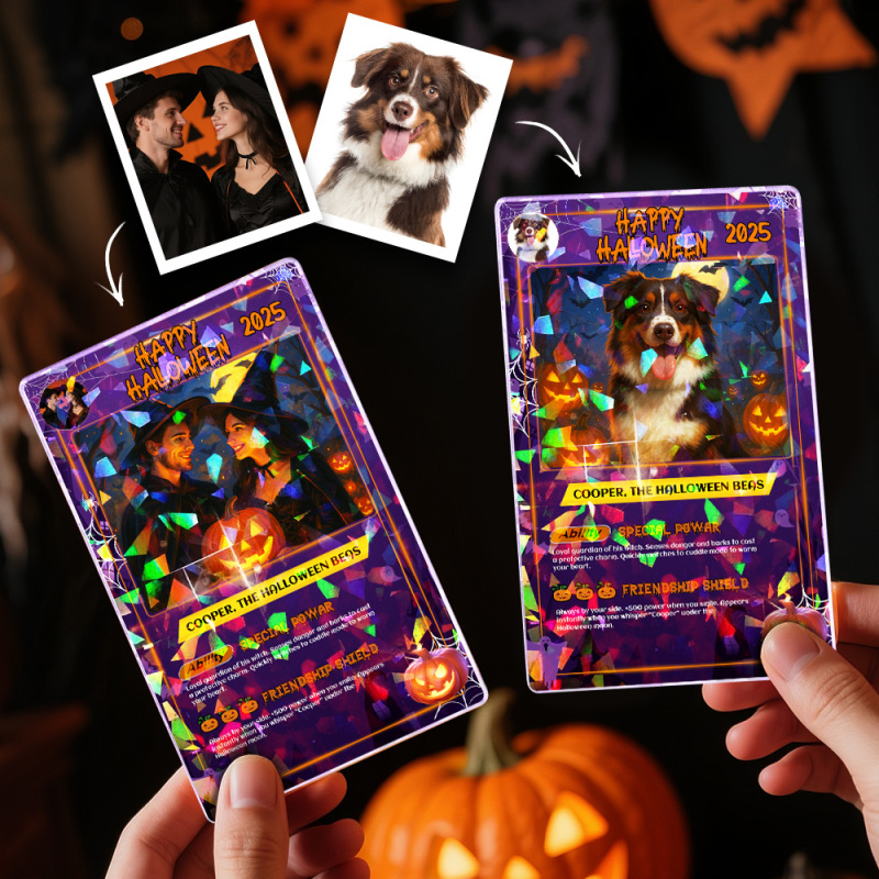 Custom Halloween & Christmas Couple Card – Personalized Cartoon Trading Card with Photo & Name, Unique Holiday Gift for Him & Her