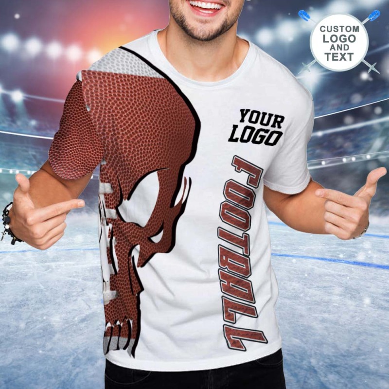 Custom Logo and Text T-shirt Football And Skull Short Sleeve Custom Mens T-shirt