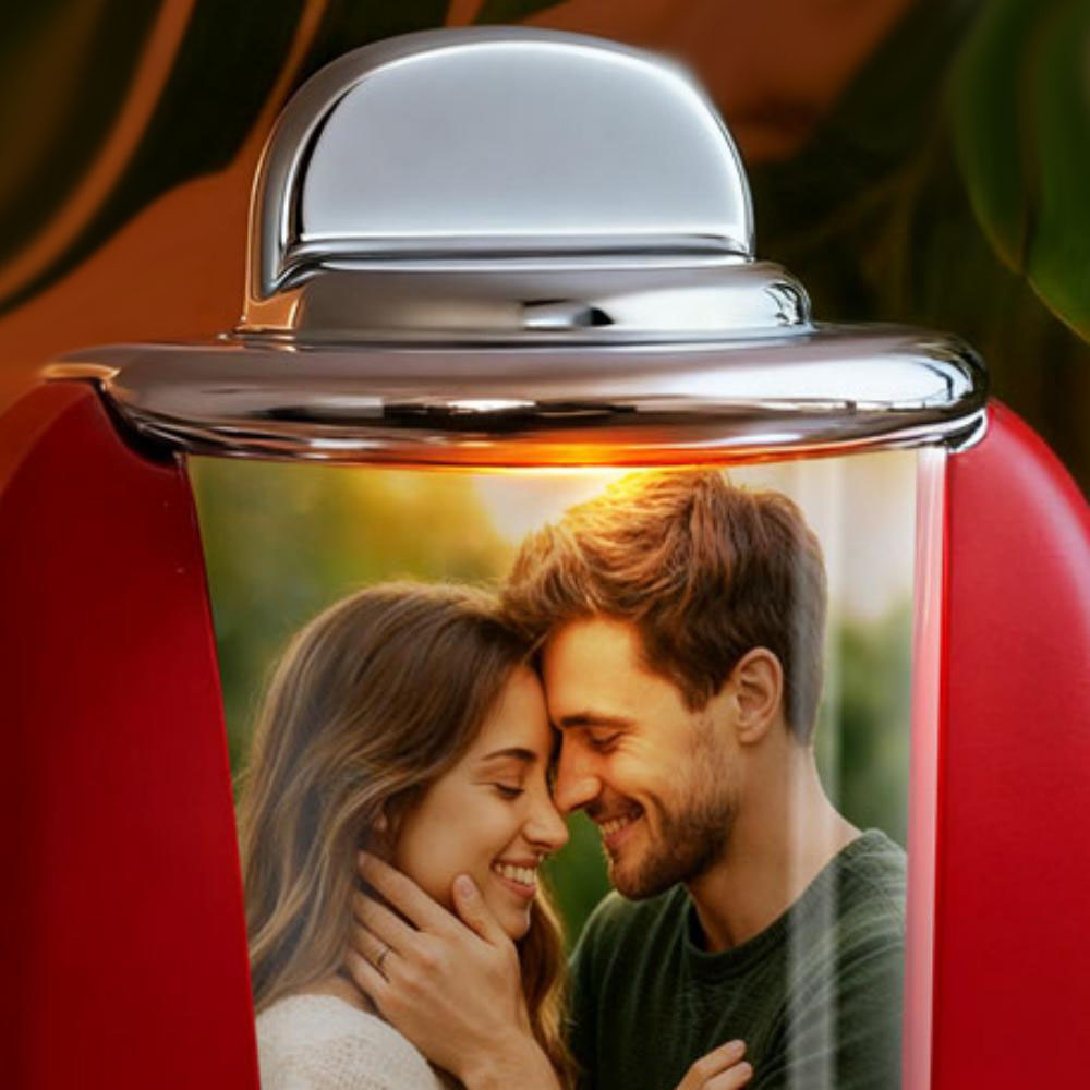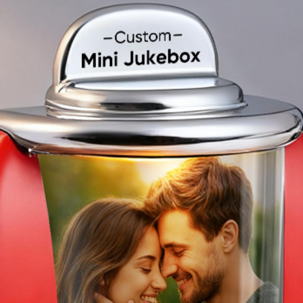 Custom Mini Jukebox Retro Speaker – Personalized Photo & 2 Songs Mini Player with Radio | Vintage Tabletop Home Decor Nostalgic Gift