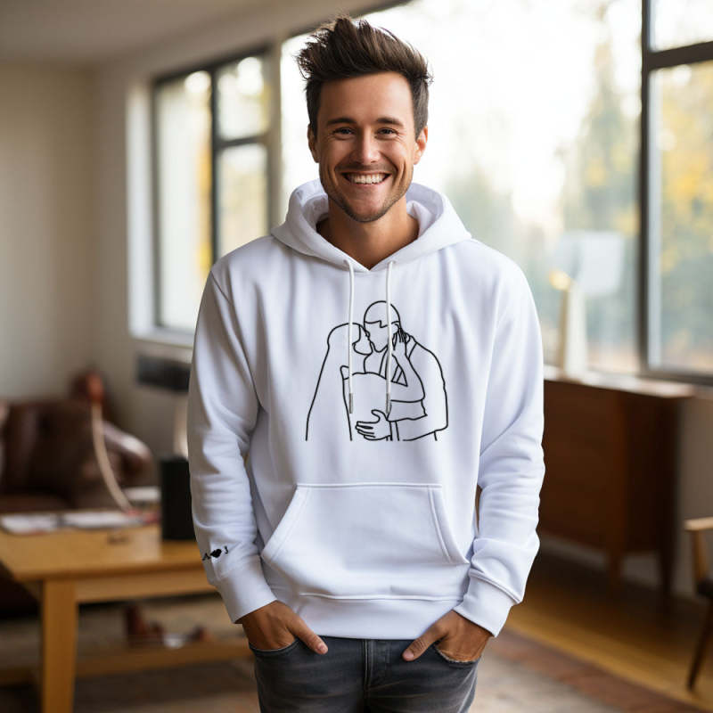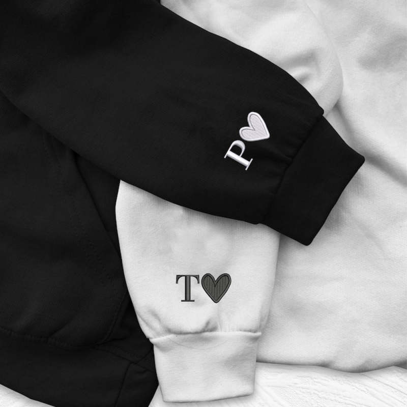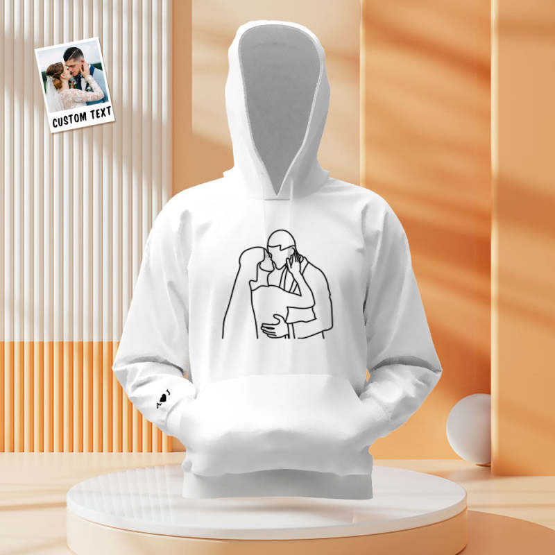 Custom Photo Embroidered Pocket Hoodie Text On Sleeve Colorful Couple Sweatshirt