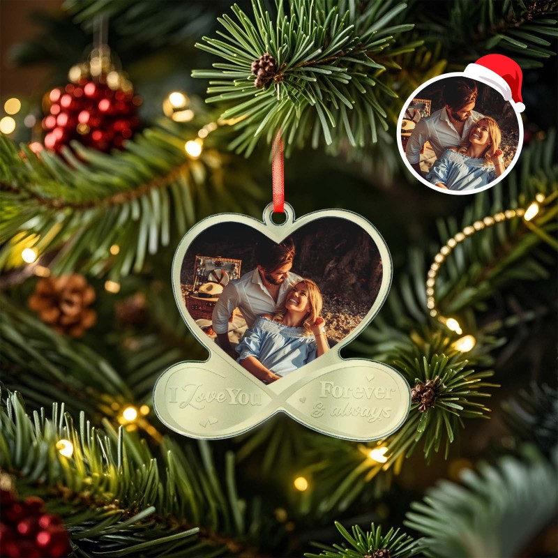 Custom Photo I Love You Forever & Always - Couple Personalized Custom Mirrored Acrylic Ornament - Christmas Gift For Husband Wife, Anniversary