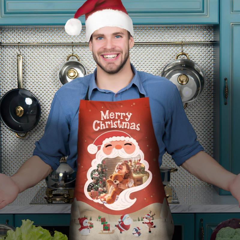 Custom Photo Kitchen Apron-Santa Heart
