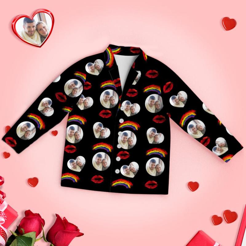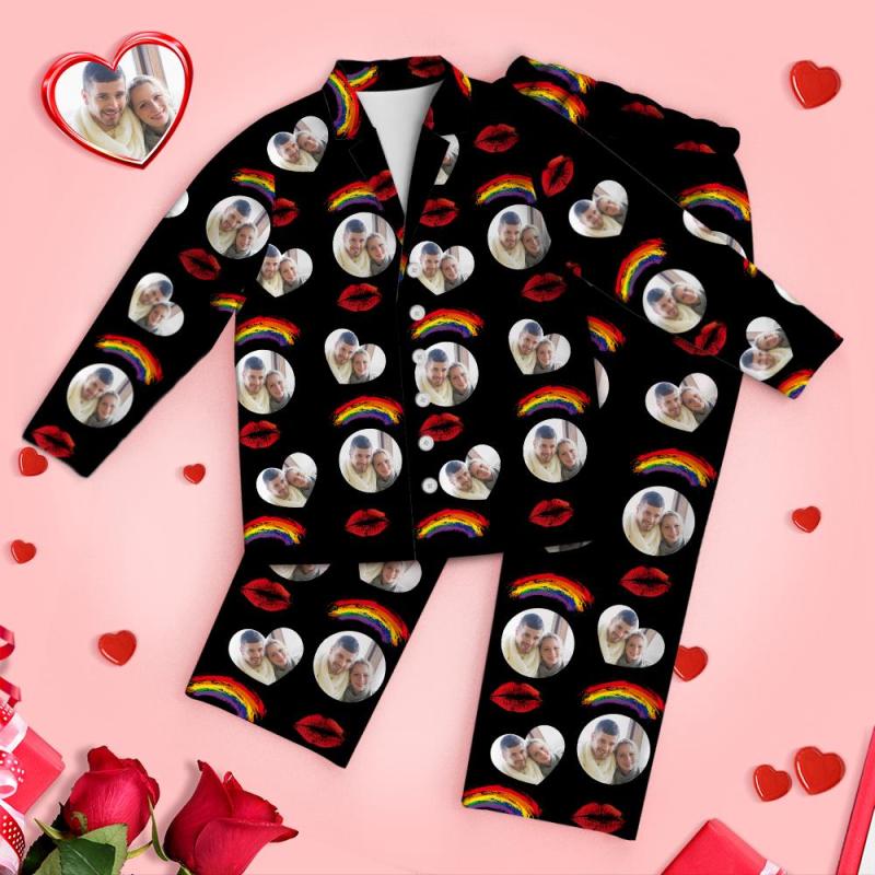 Custom Photo Lip Print And Rainbow Pajamas Long Sleeve Pajamas