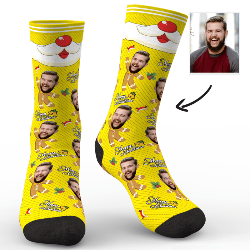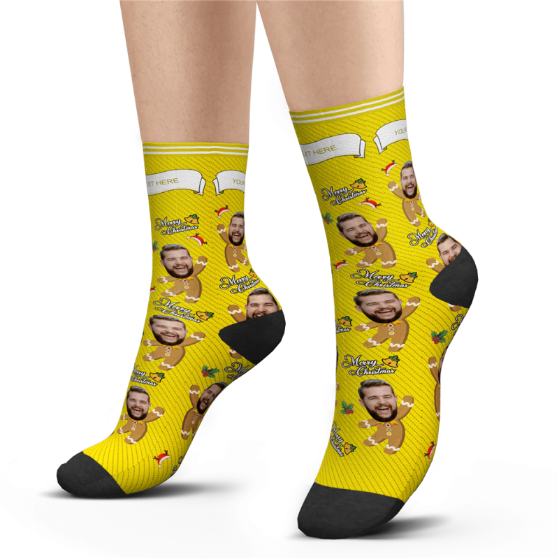 Custom Photo Socks Christmas Gingerbread Man With Your Text