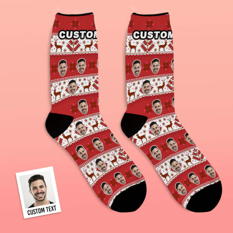 Custom Photo Socks Christmas Socks Christmas Face socks over Nordic Pattern