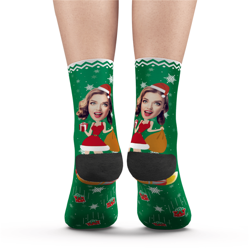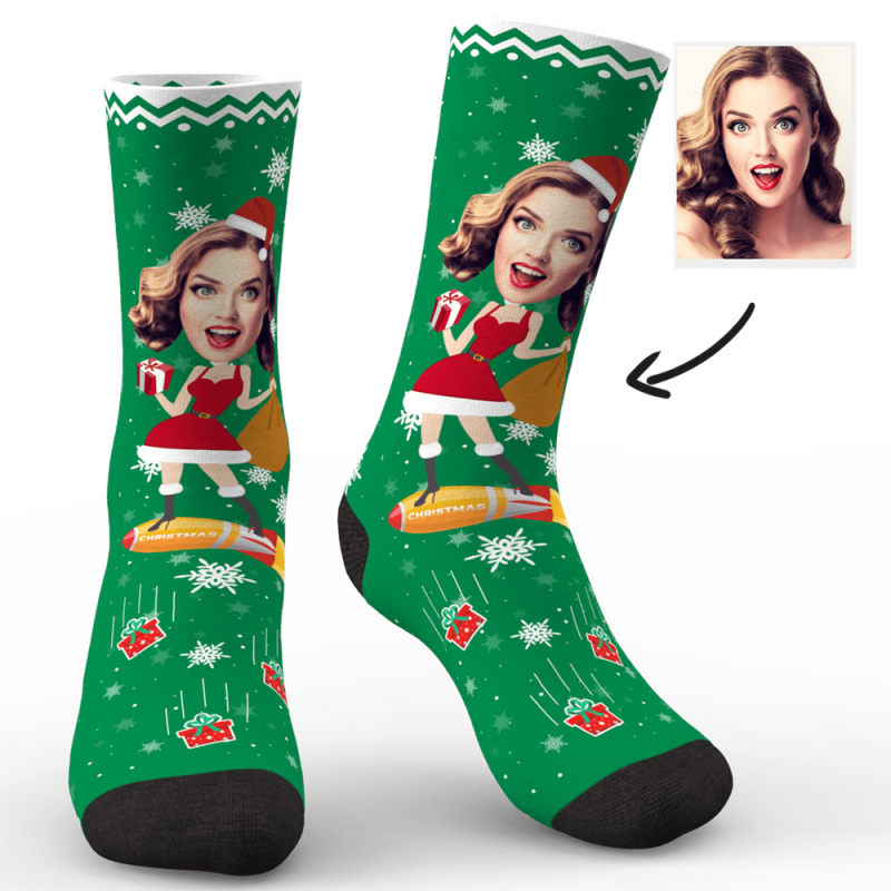 Custom Photo Socks Funny Christmas Pinup Girl - MyPhotoSocks Custom Photo Socks Funny Christmas Pinup Girl - MyPhotoSocks