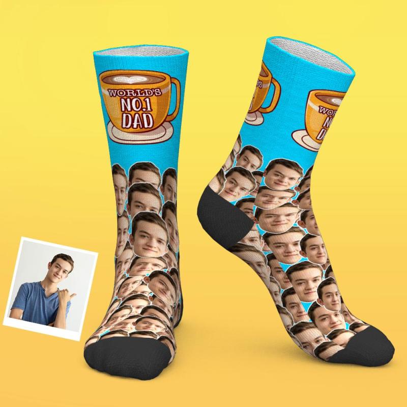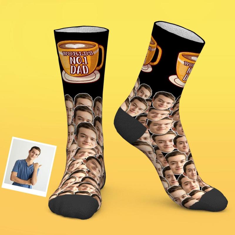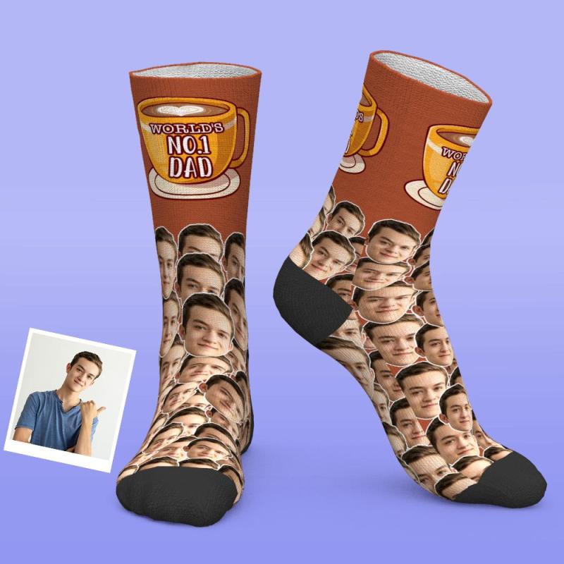 Custom Photo Socks Personalized Faces on Novelty Funny Father's Day Coffee Socks for Gift