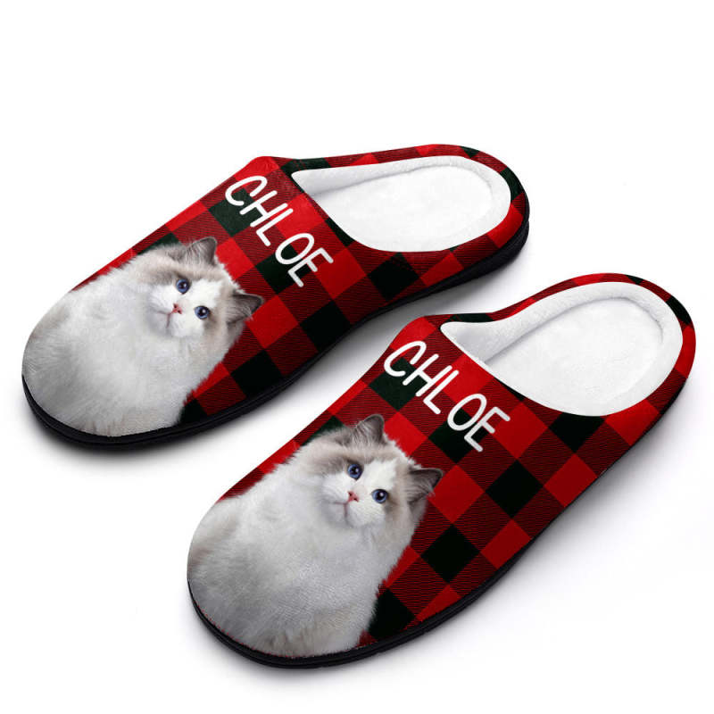 Custom Photo Women's and Men's Slippers Personalized Casual House Cotton Slippers Christmas Gift Pet Cat
