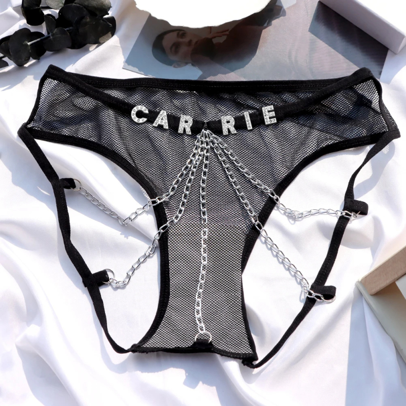 Custom Sexy Thongs with Jewelry Crystal Letter Name Women's Underwear Gift for Her