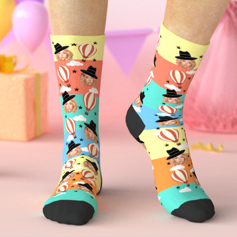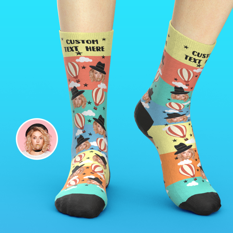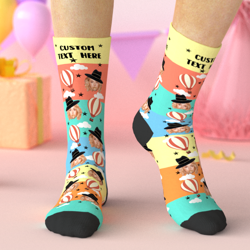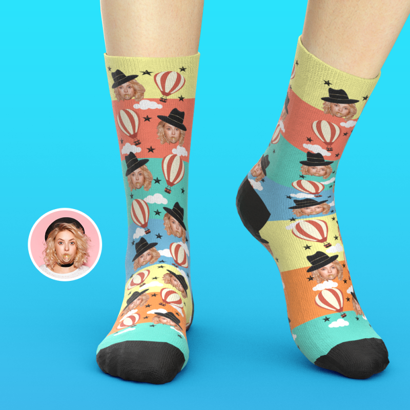 Custom Socks with Floating The Skies Air Balloon, Personalized Photo Socks, Funny Birthday Gifts