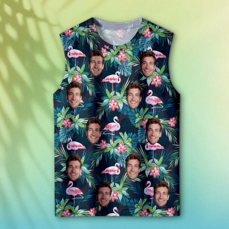 Custom Thick Face Tank Tops Men's Sleeveless Shirt Leaves & Flamingo