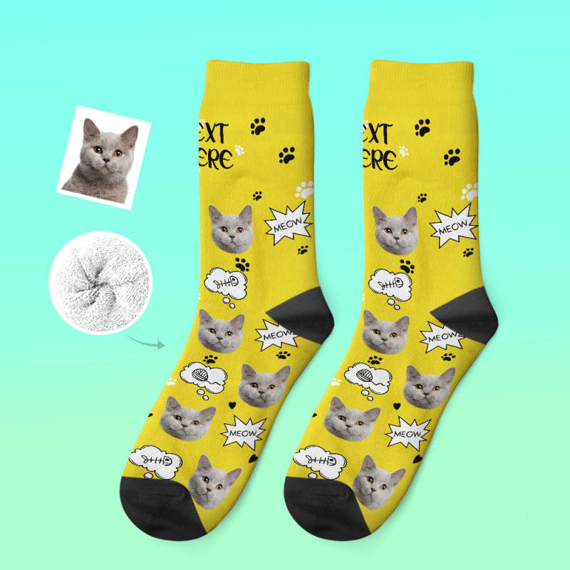Custom Thick Socks Photo 3D Digital Printed Socks Autumn Winter Warm Socks Cat Meow