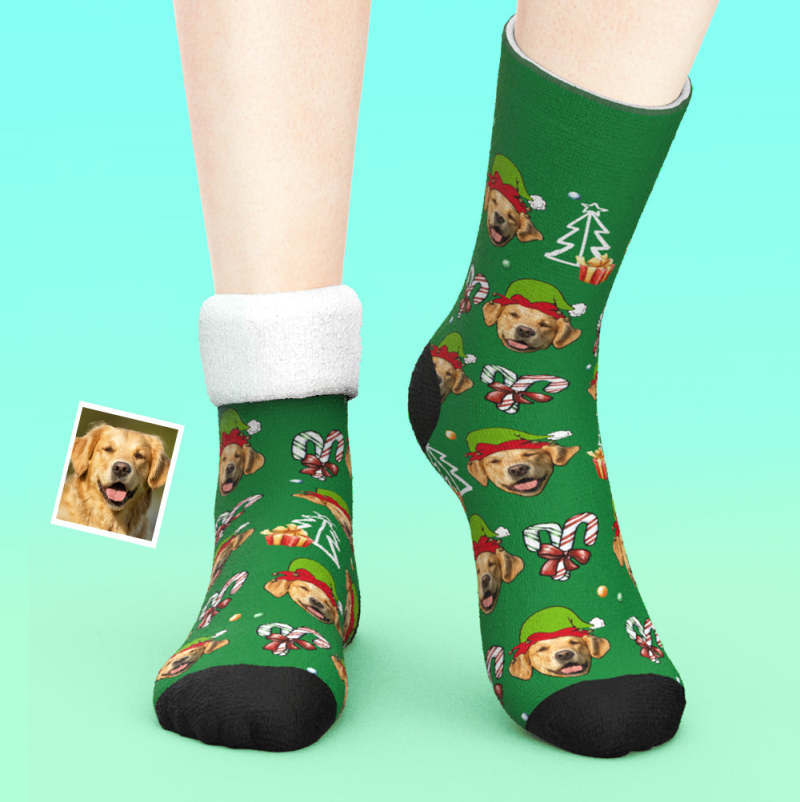 Custom Thick Socks Photo 3D Digital Printed Socks Autumn Winter Warm Socks Christmas Gift For Pet Lover