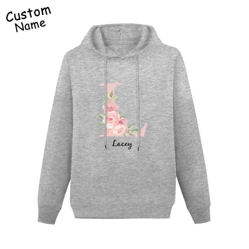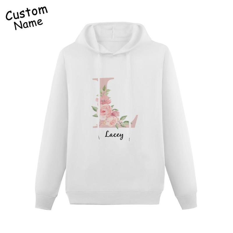 Custom Women's Hoodie Sweatshirt Personalised Letter Name Hoodie - L