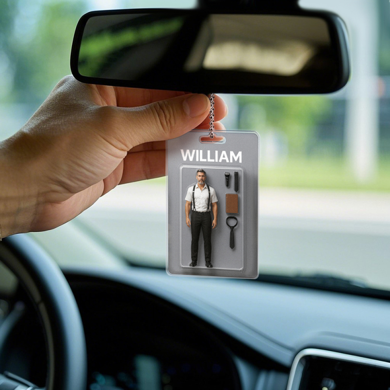Fully Body Customizable Action Figure Pack Packaging Toy Box Style Art Gift Personalized Acrylic Car Hanger Gift for Him 2D Printed Flat Design