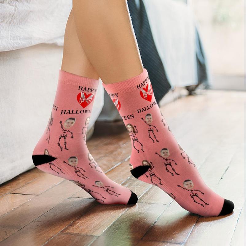 Halloween Socks, Custom Halloween Couple Skeleton Socks, Best Halloween Gift