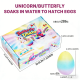 - Within 24 hours, the egg cracks open. By Day 3, the unicorn begins to grow-keep it submerged to see it expand. By Day 5, it can grow up to 600%! If water gets cloudy, replace it with fresh water (not exceeding 35°C). Unicorn shrinks back to original size if taken out of water for a few days. You can repeat the fun by soaking it again! Make it fun: Observe the egg’s daily changes with your child or turn it into a `mini science experiment’ to learn about water absorption!