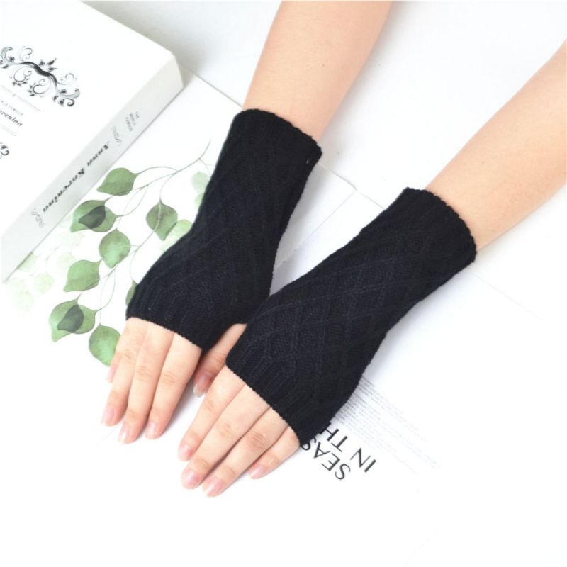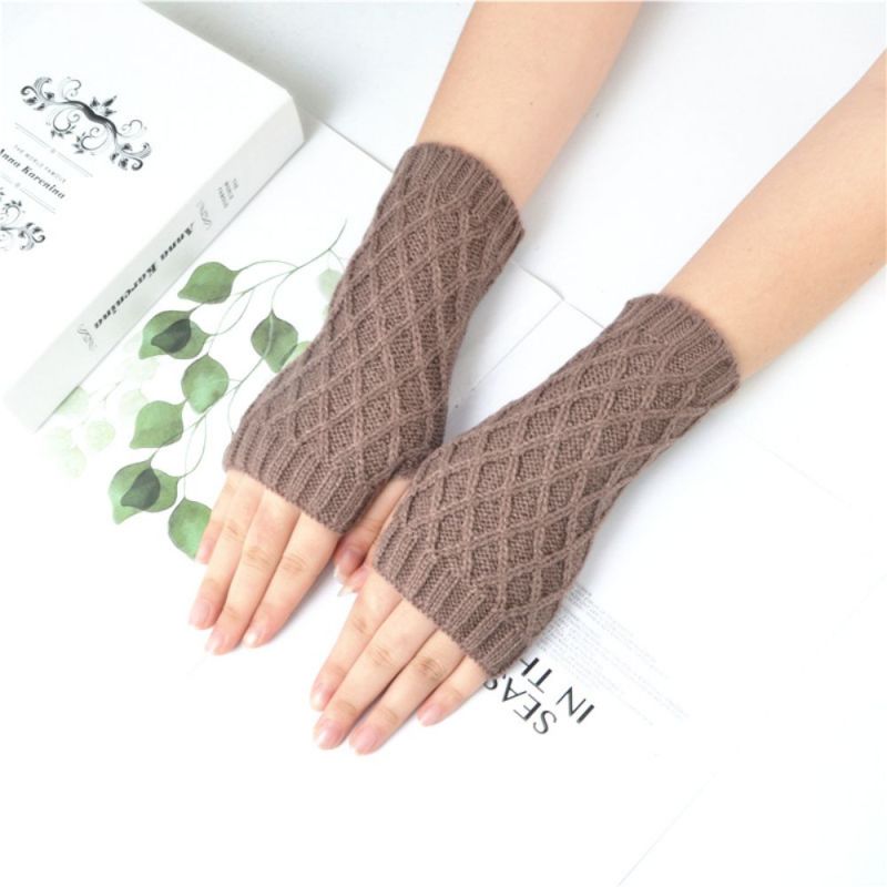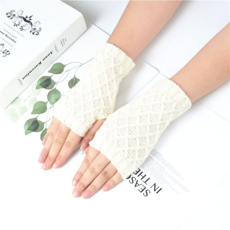 Knitted Half Finger Gloves Small Rhombus Block Wool Warm Short Fingerless Gloves