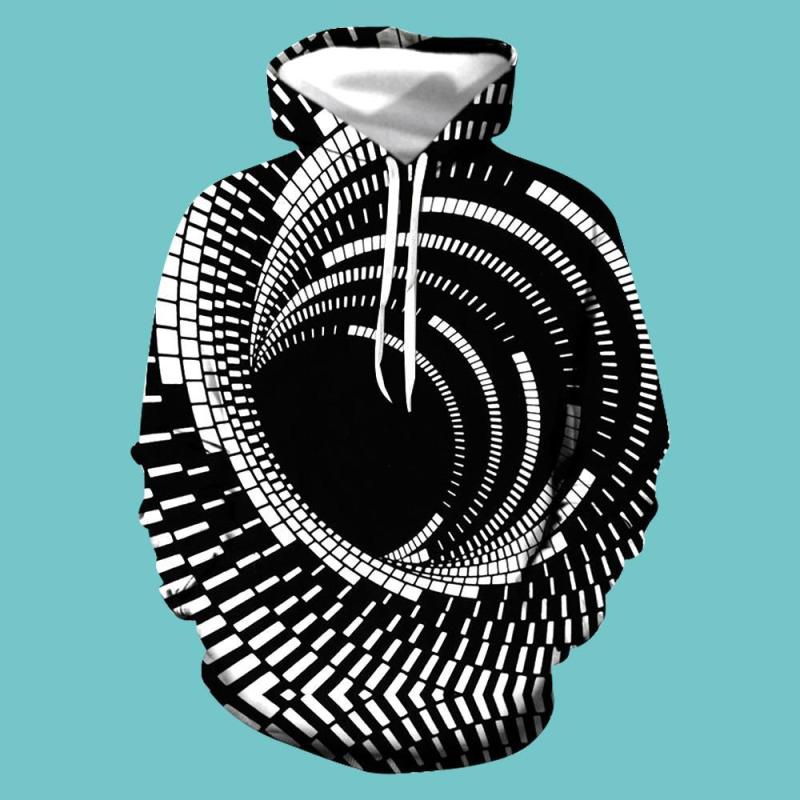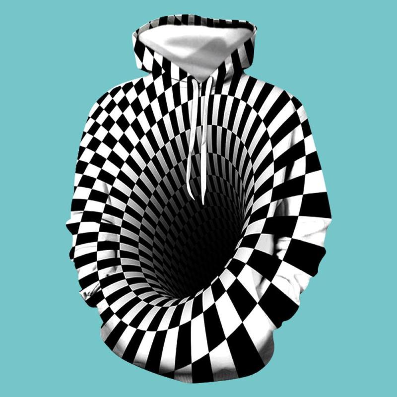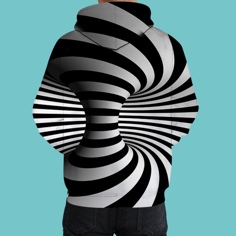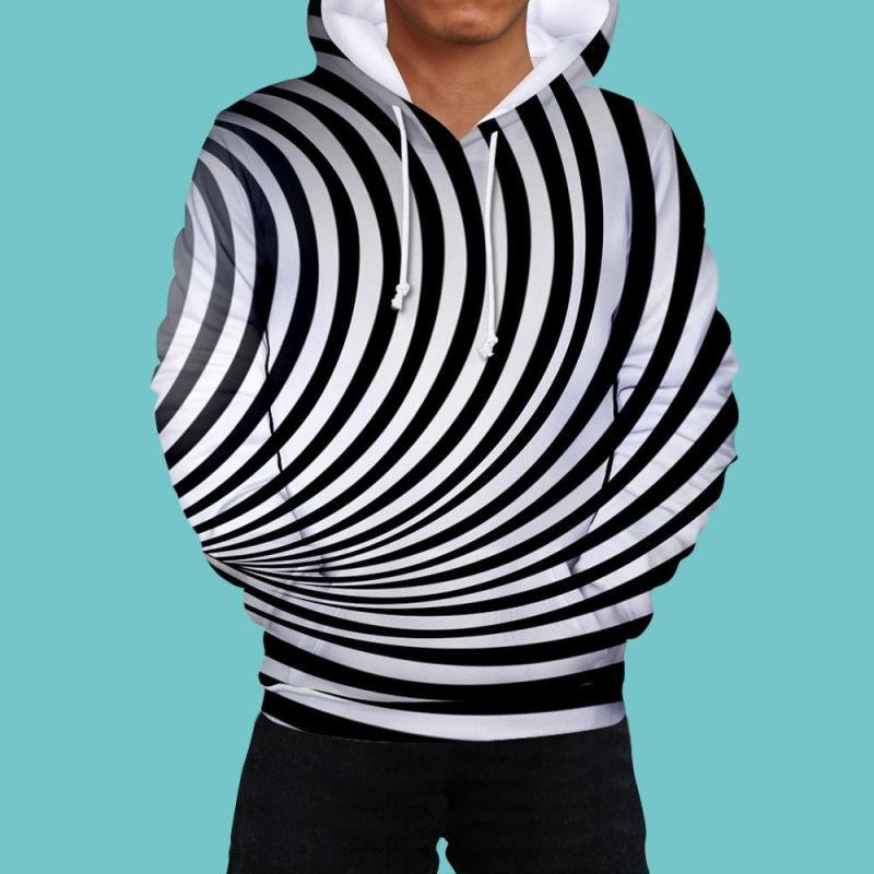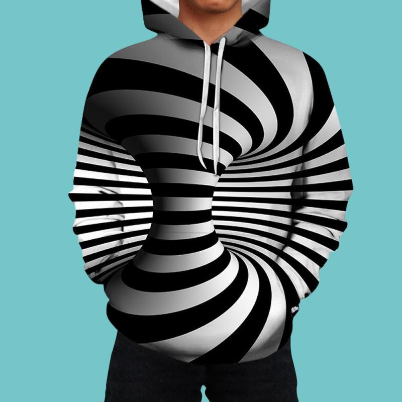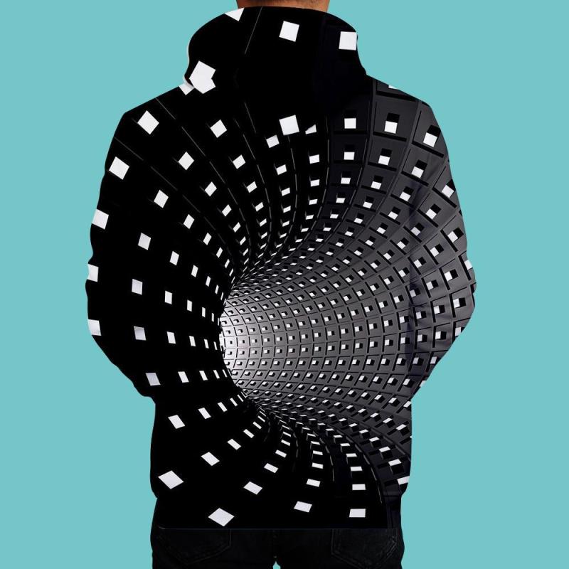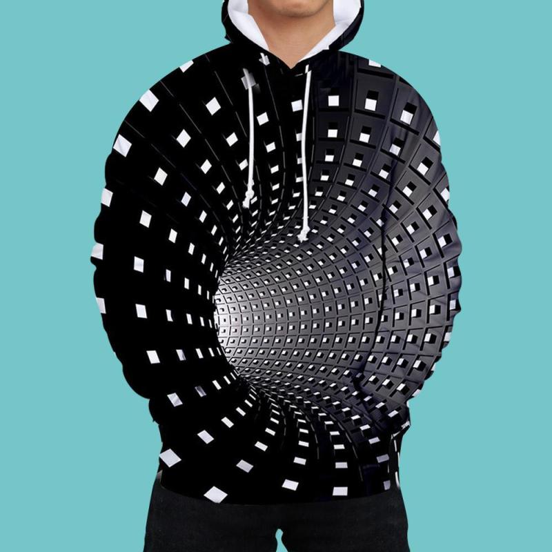 Men's Pullover Hoodie 3D Graphic Optical Illusion Long Sleeve Black