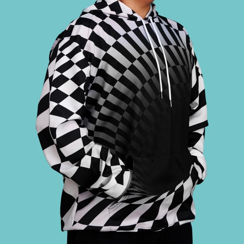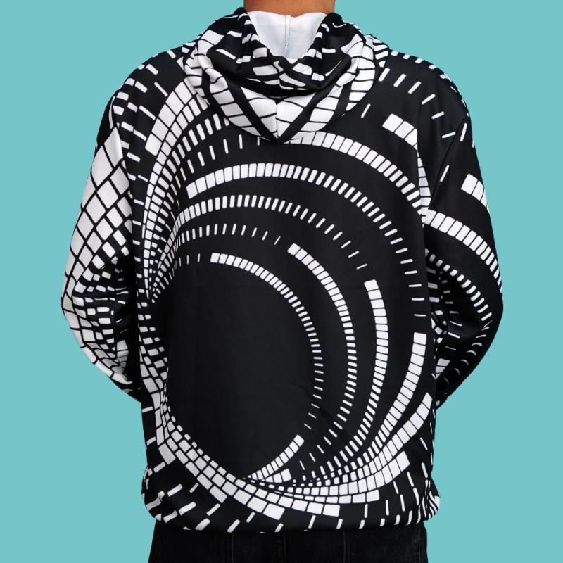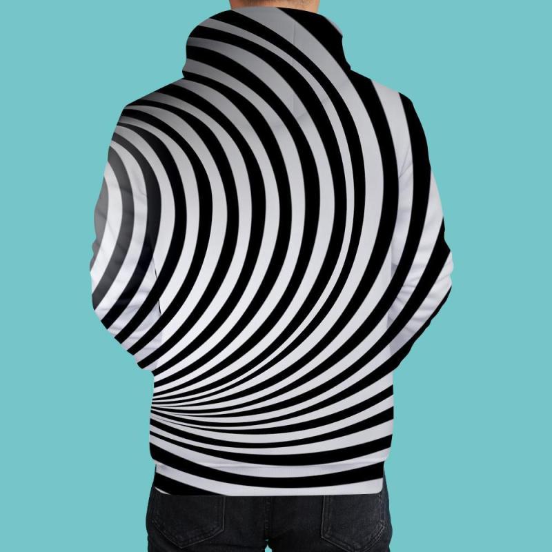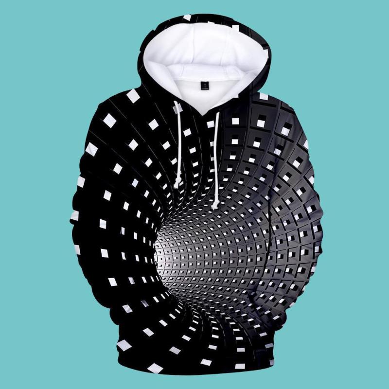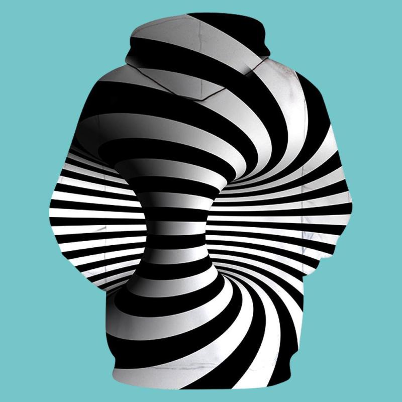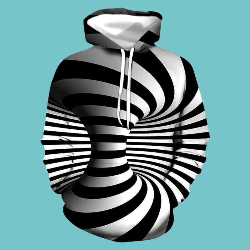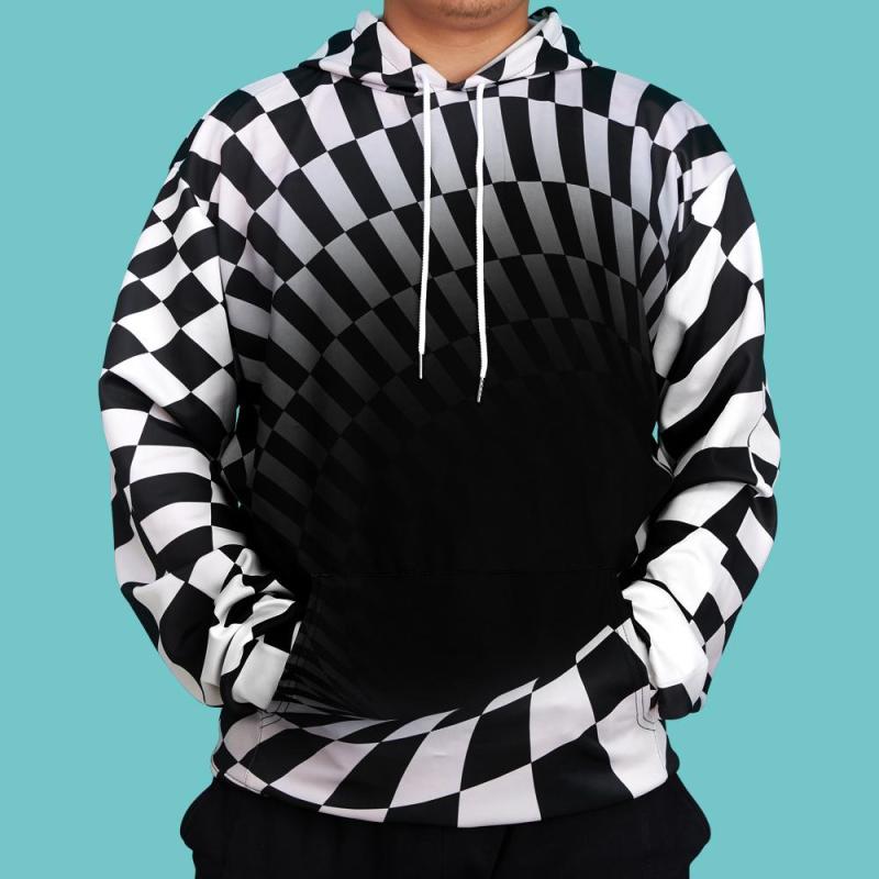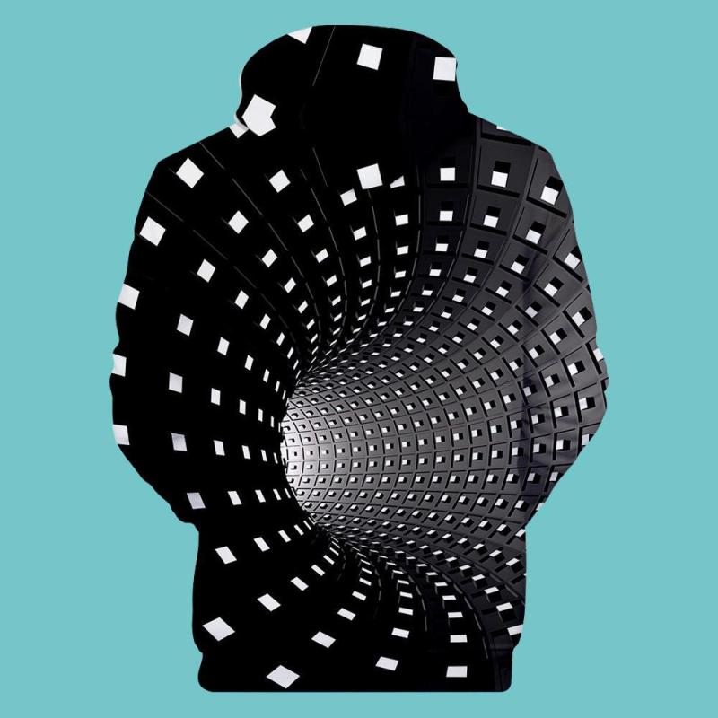 Men's Pullover Hoodie 3D Graphic Optical Illusion Long Sleeve Black