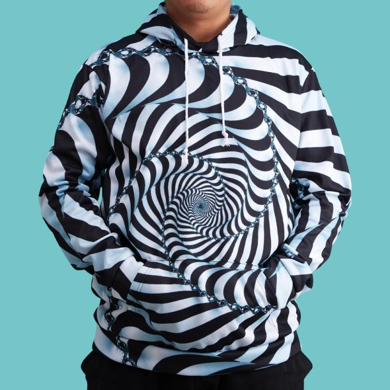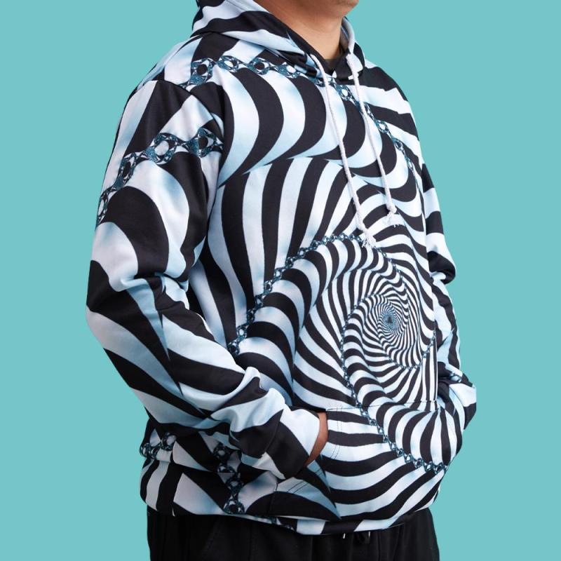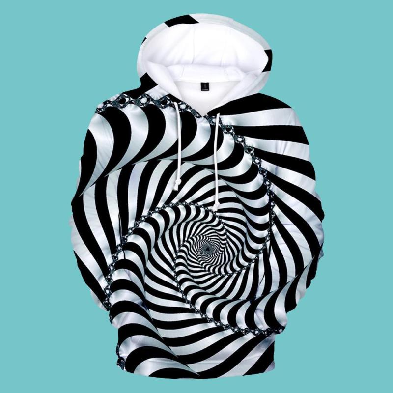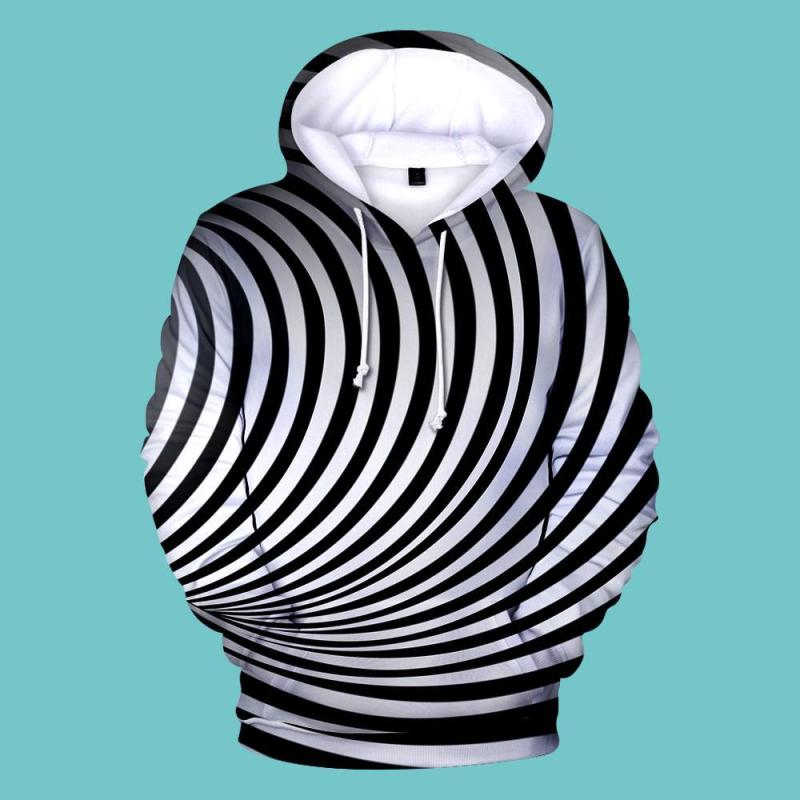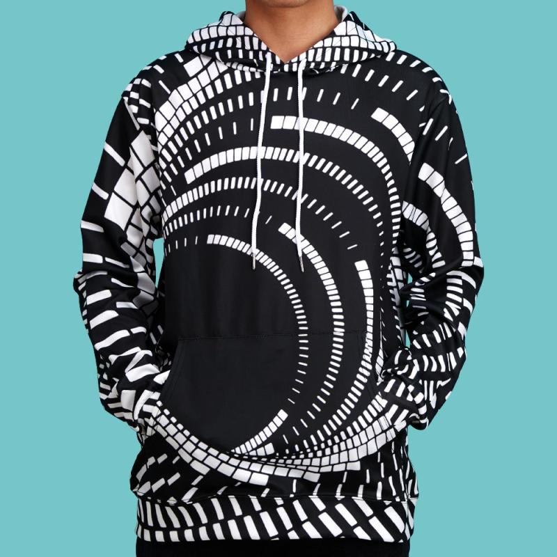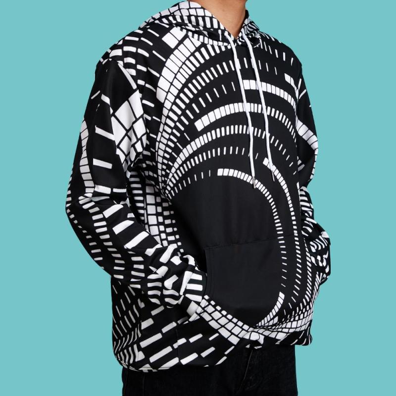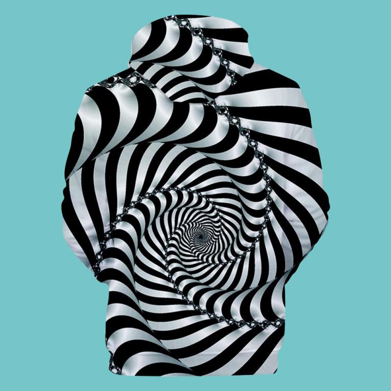 Men's Pullover Hoodie 3D Graphic Optical Illusion Long Sleeve Black