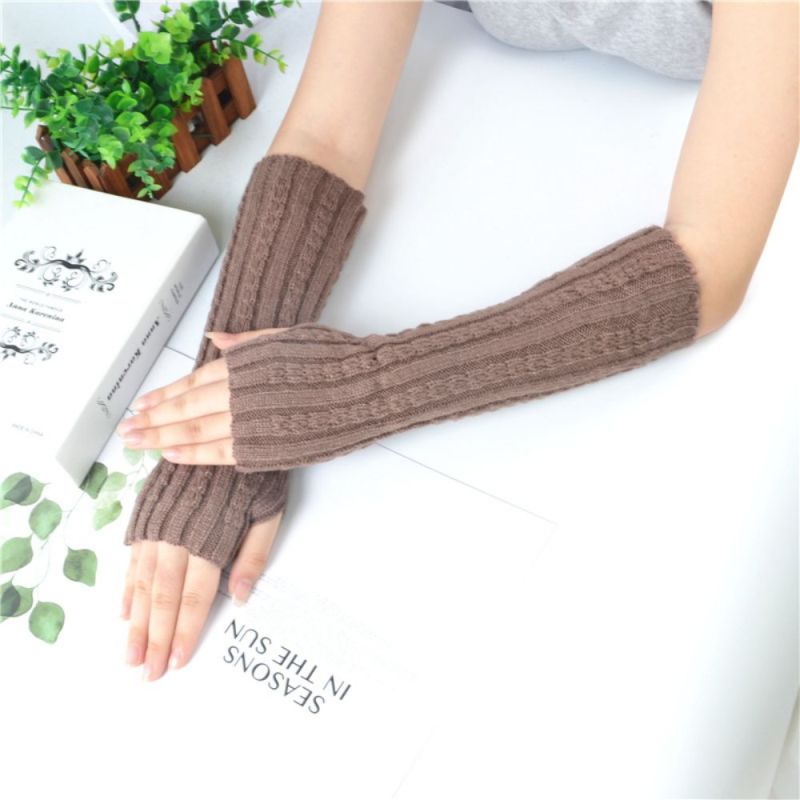 Mid-length Arm Cover Knitted Wool Warm Solid Color Winter Cold Protection Sleeve