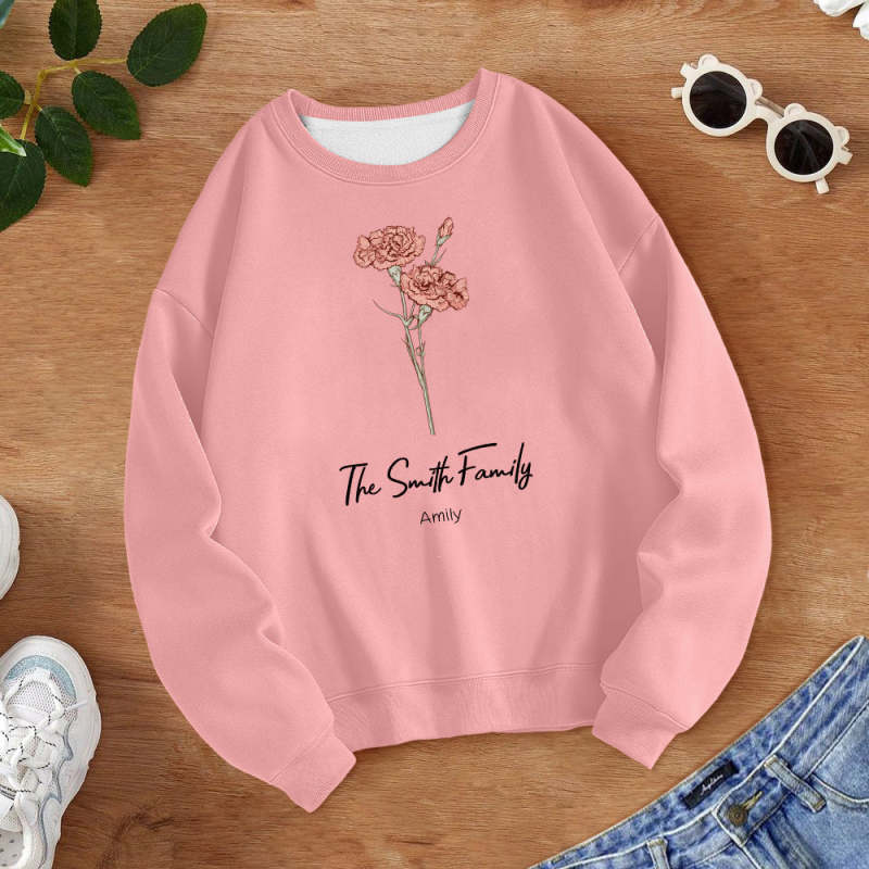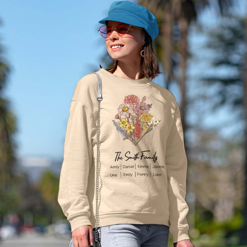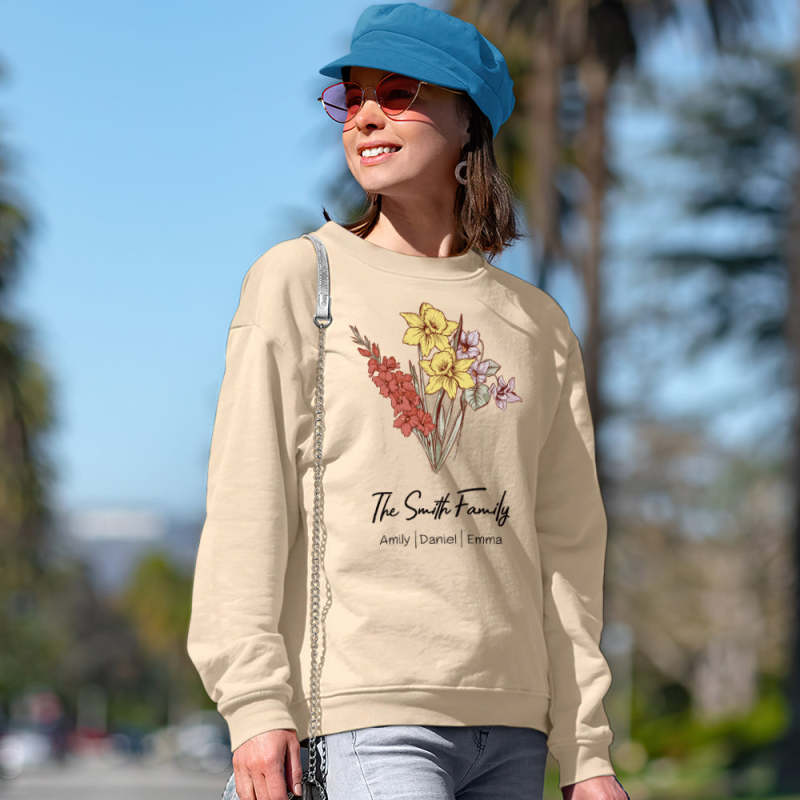 Personalized Birth Flower Bouquet Sweatshirt Custom Birth Flower Hoodie Gifts for Her