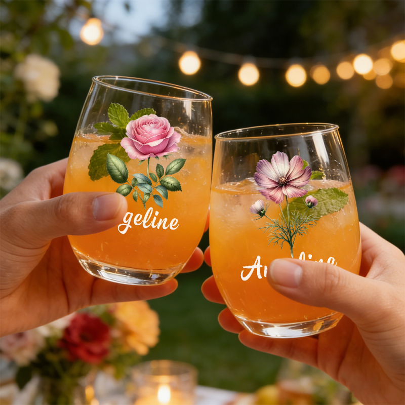 Personalized Birth Flower Wine Glass with Name, Custom Mother's Day Gift, Month Flower Birthday Gifts For Her