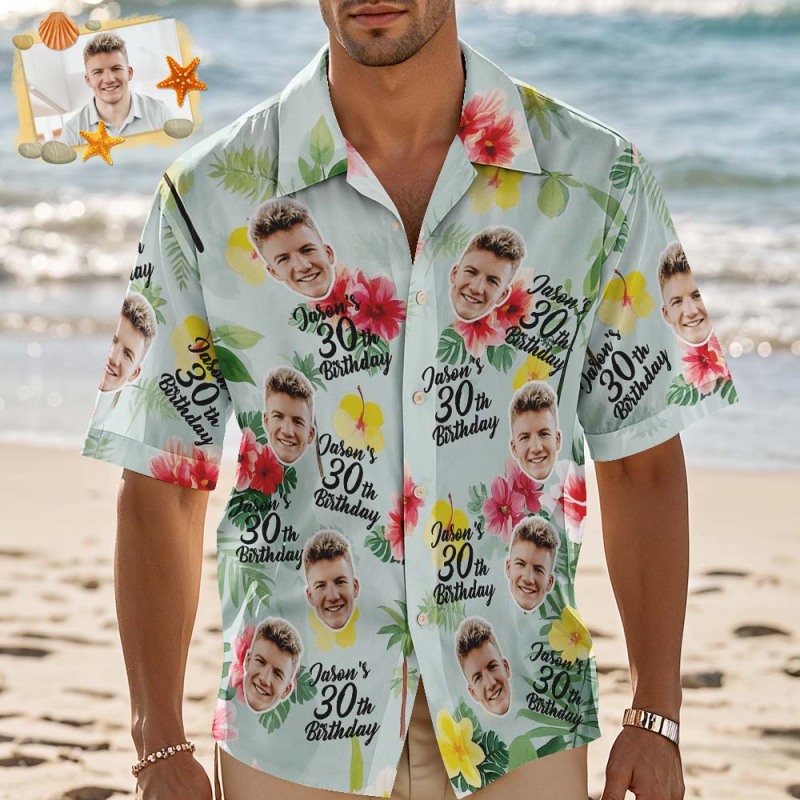 Personalized Birthday Couple Hawaiian Shirt Custom Face Name Summer Birthday Party Blue Shirt Aloha Birthday Hawaiian Shirt Birthday Gift