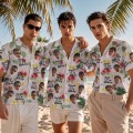 This Hawaiian shirt features print,button up closure,short sleeve.