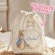 Personalized Cute Peter Rabbit Drawstring Canvas Bag with Initials and Name Easter Egg Hunt Basket Birthday Party Favor for Kids