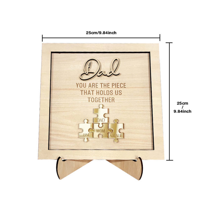 - On the occasion of Father's Day, send dad a plaque with kids' names puzzle sign. And proudly proclaim "You Are The Piece That Holds Us Together" to dad. This gift touches your father or husband more than any promise and will make him happy like a child.