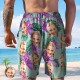 Personalized Face Beach Short Custom Photo Swim Trunks Random Tropical Print Shorts for Dad