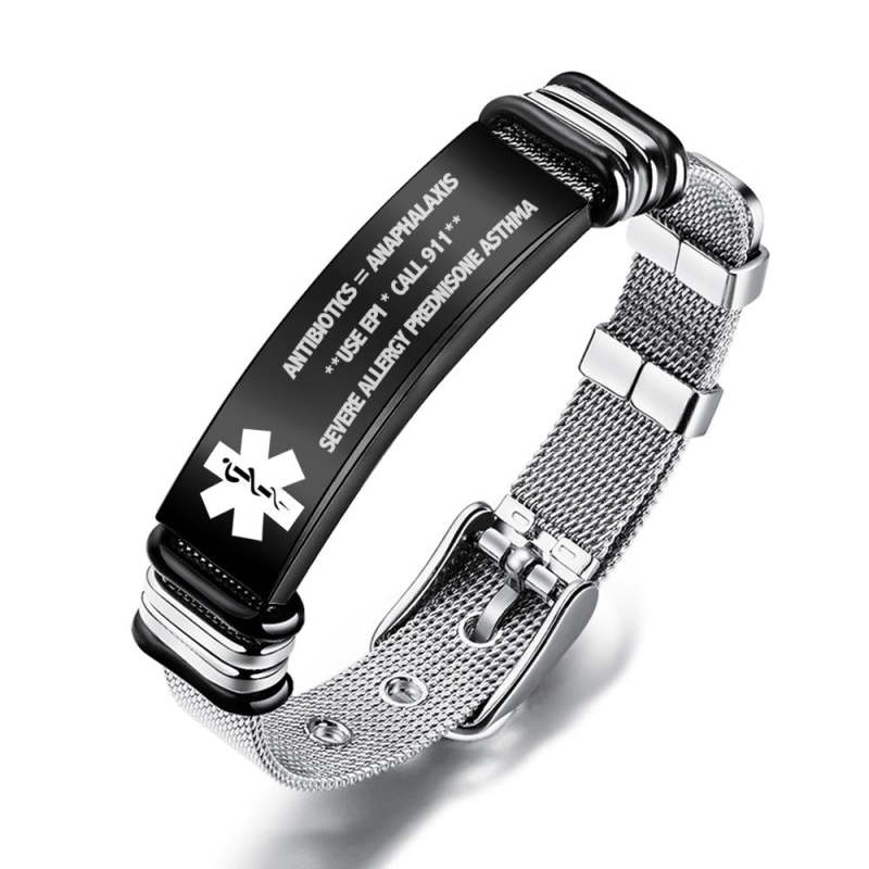 Durable and Waterproof ID Bracelet--The Medical Bracelet has a good weight to it; it is made from stainless steel and is very strong, durable, non-corrosive and waterproof.Suitable for daily wear or outdoor.
