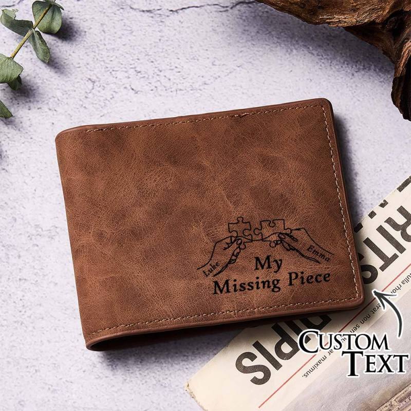 Personalized Name Leather Wallet My Missing Piece Couple Hands