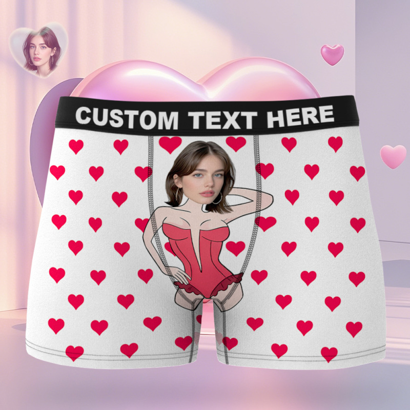 Personalized Valentine Face Men's Boxer Underwear Face Property Of Name Boxer Gift Custom Photo Funny Men's Boxer Briefs Gift