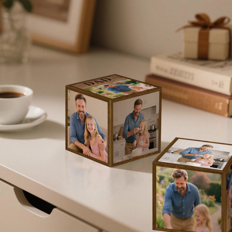 Personalized Wooden Photo Cube – Happy Father's Day Gift for Dad