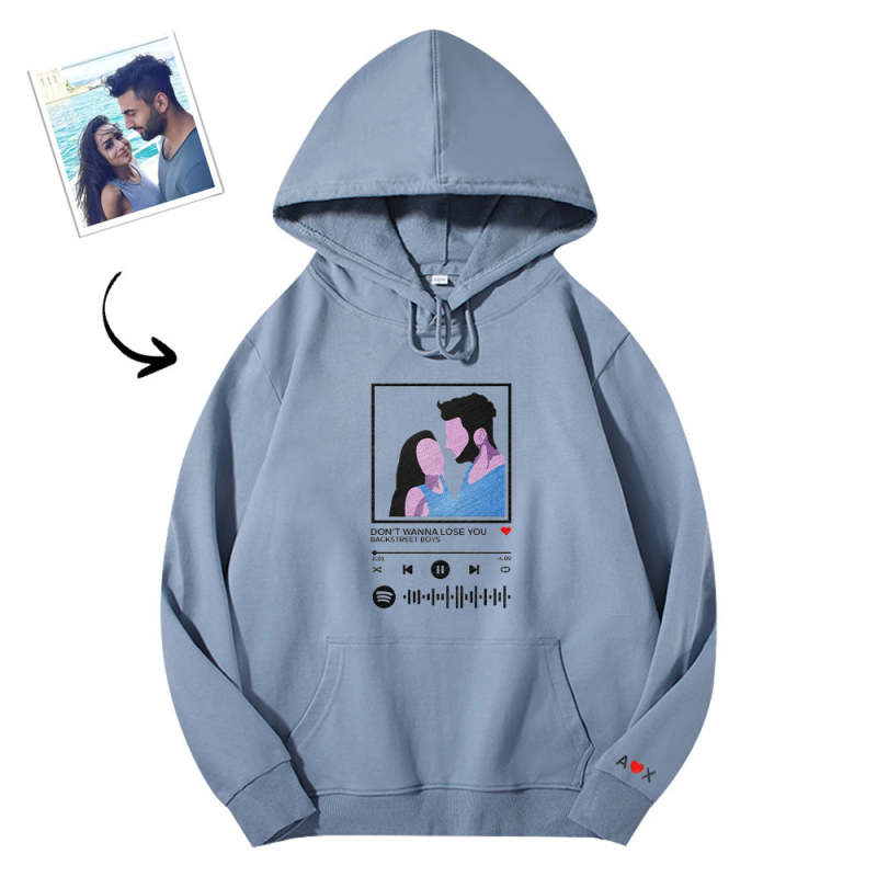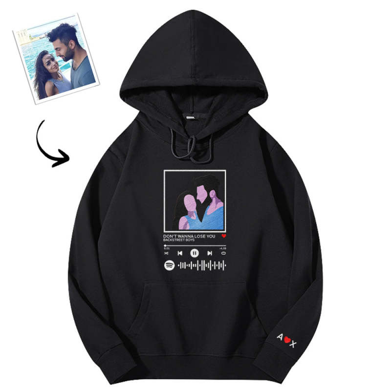 Scannable Spotify Code Embroidered Hooded Hoodie Cartoon Image Music Player Couple Gift