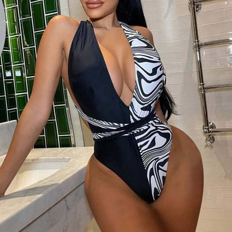Sexy Bikini Zebra Printing One Piece Swimsuit