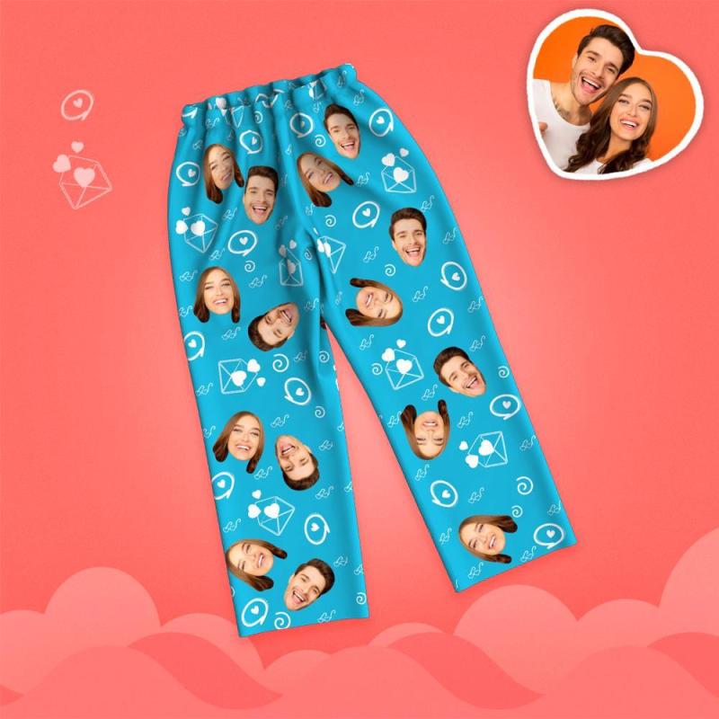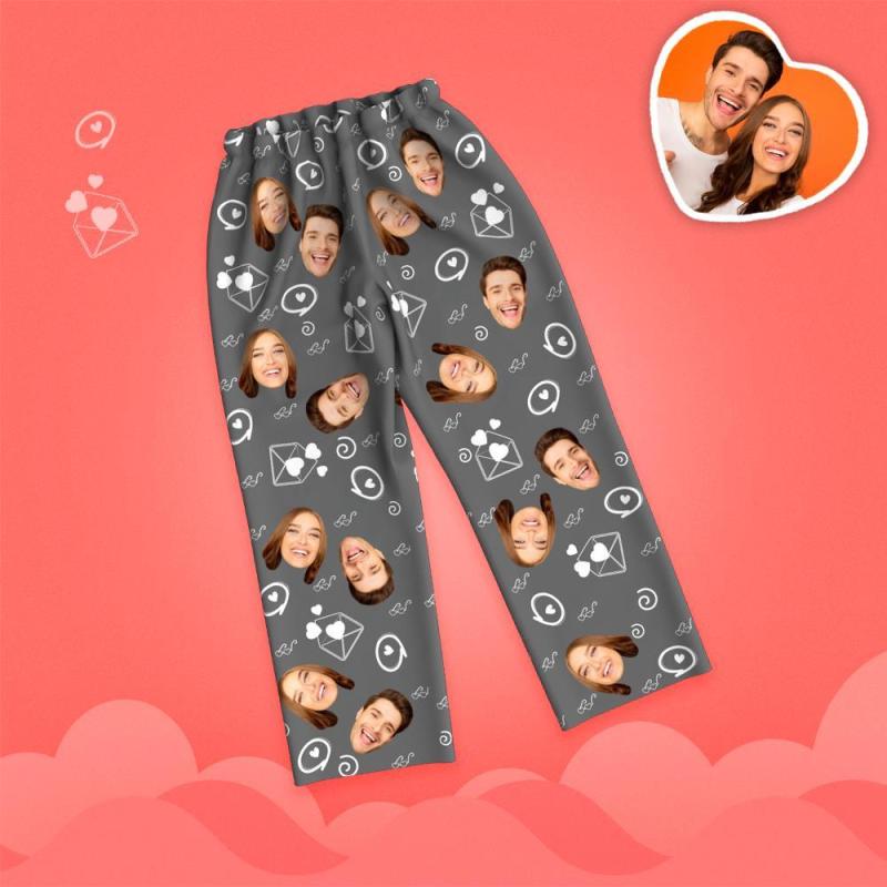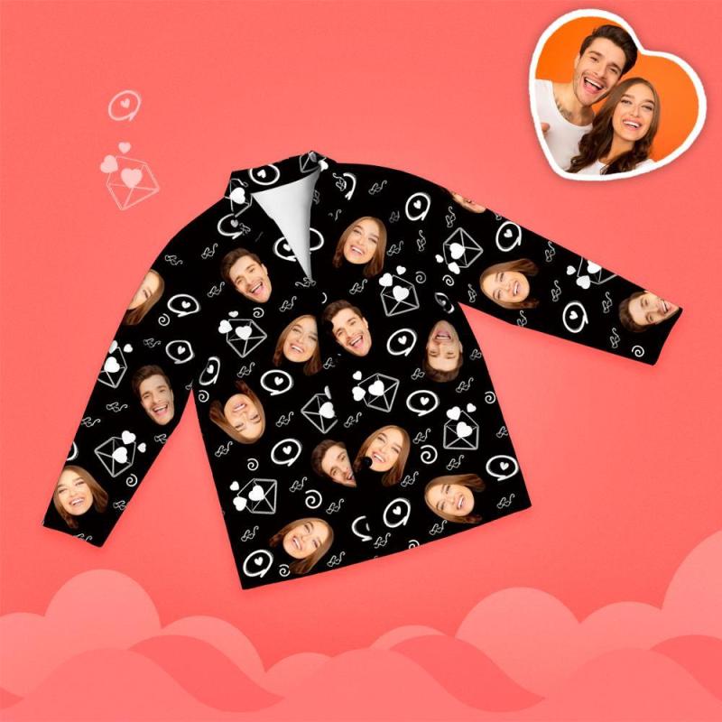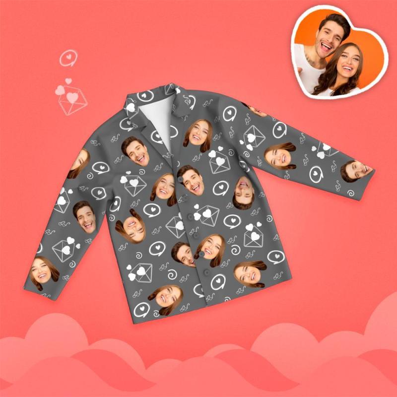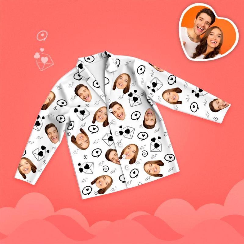 Valentine's Day Custom Face Love And Message Printed Long Sleeve Pajamas