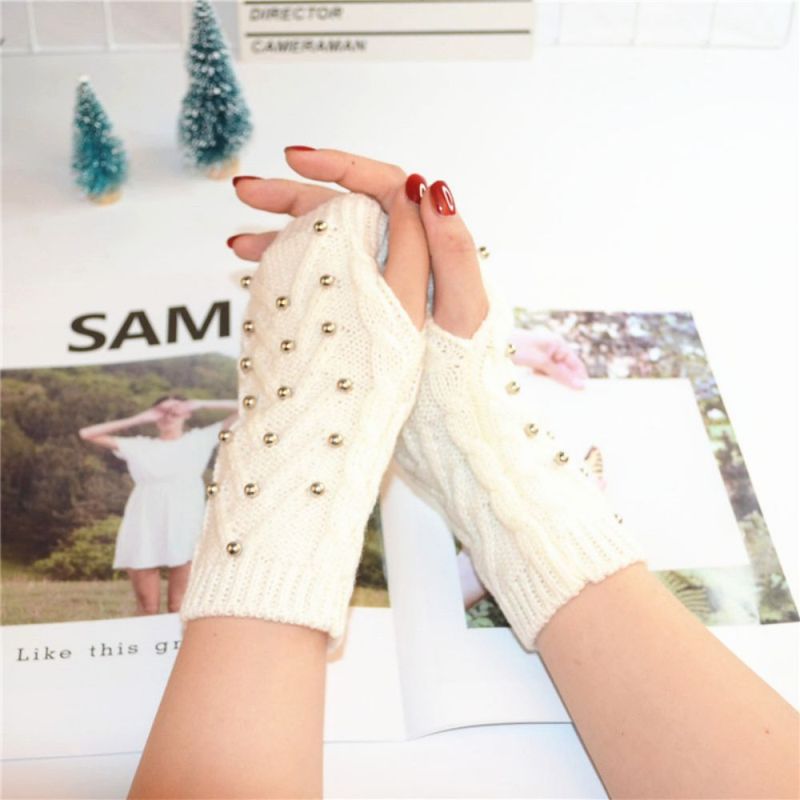 Winter Warm Half Finger Gloves Eight Character Steel Ball Adult Ladies Knitted Gloves