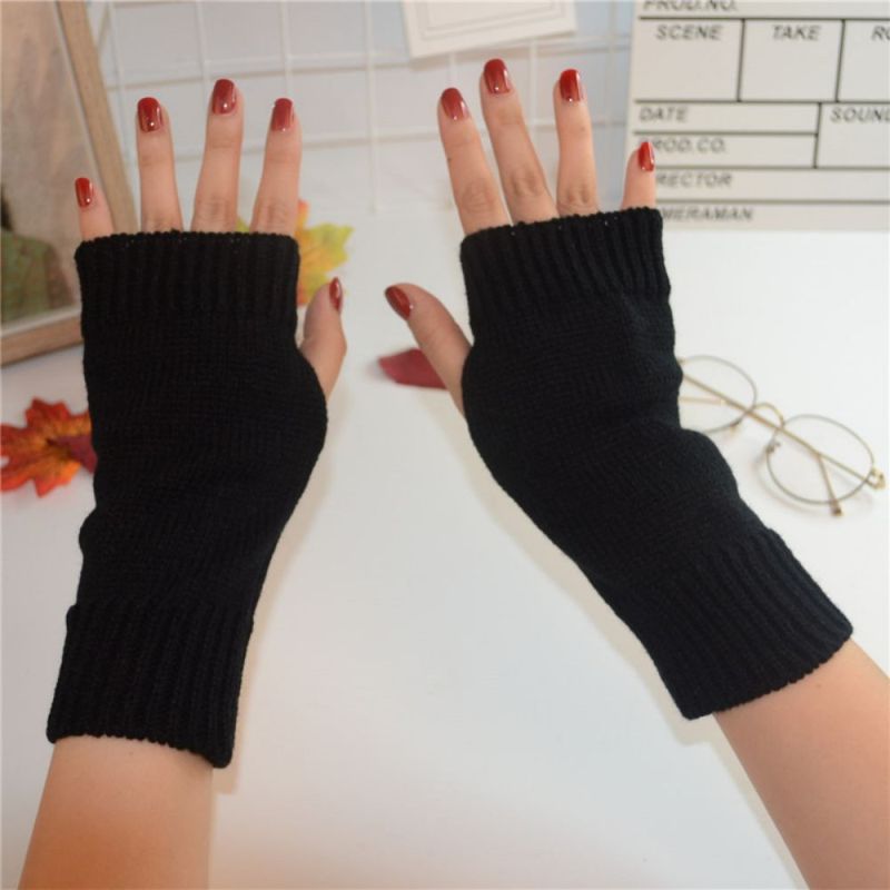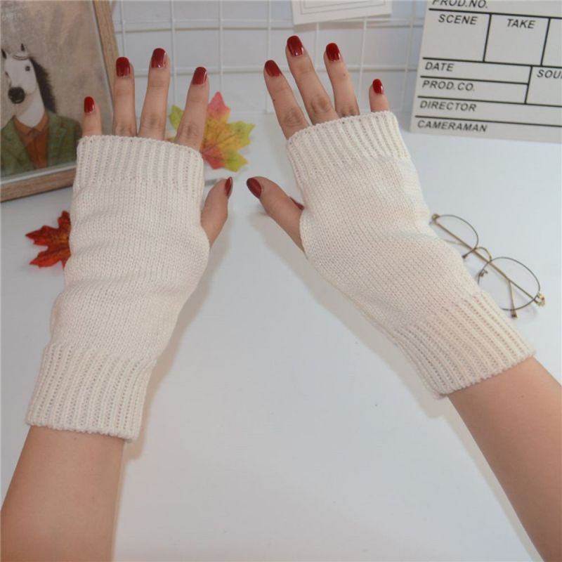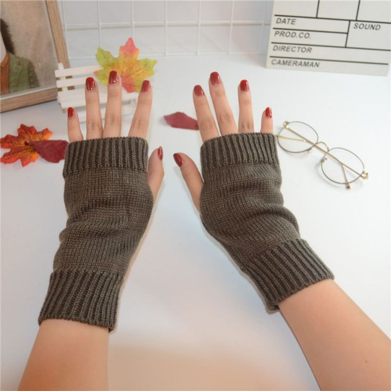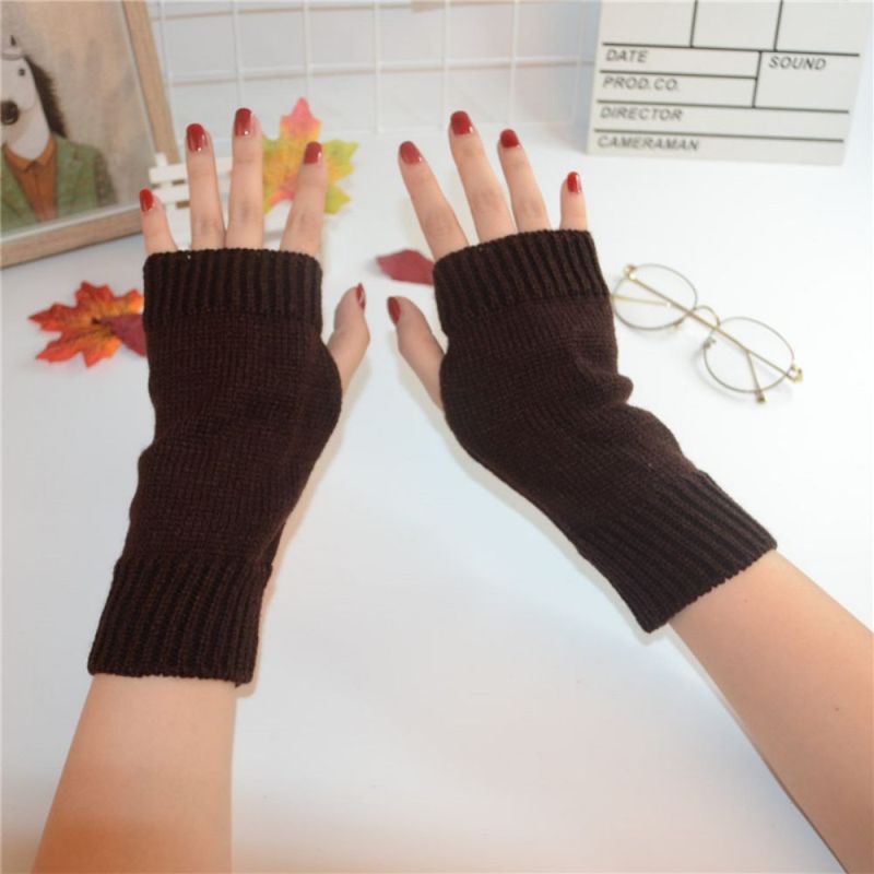 Winter Warm Short Plain Solid Color Knit Ladies Half Finger Gloves