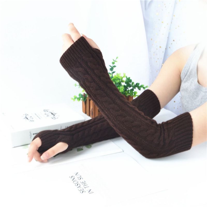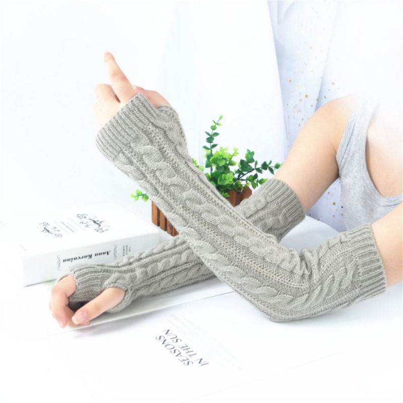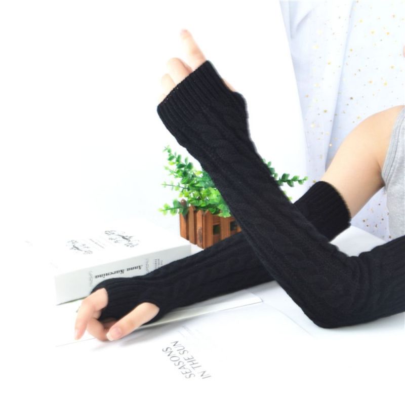 Winter Wool Long Fingerless Gloves Ladies Warm Knit Fingerless Sleeves