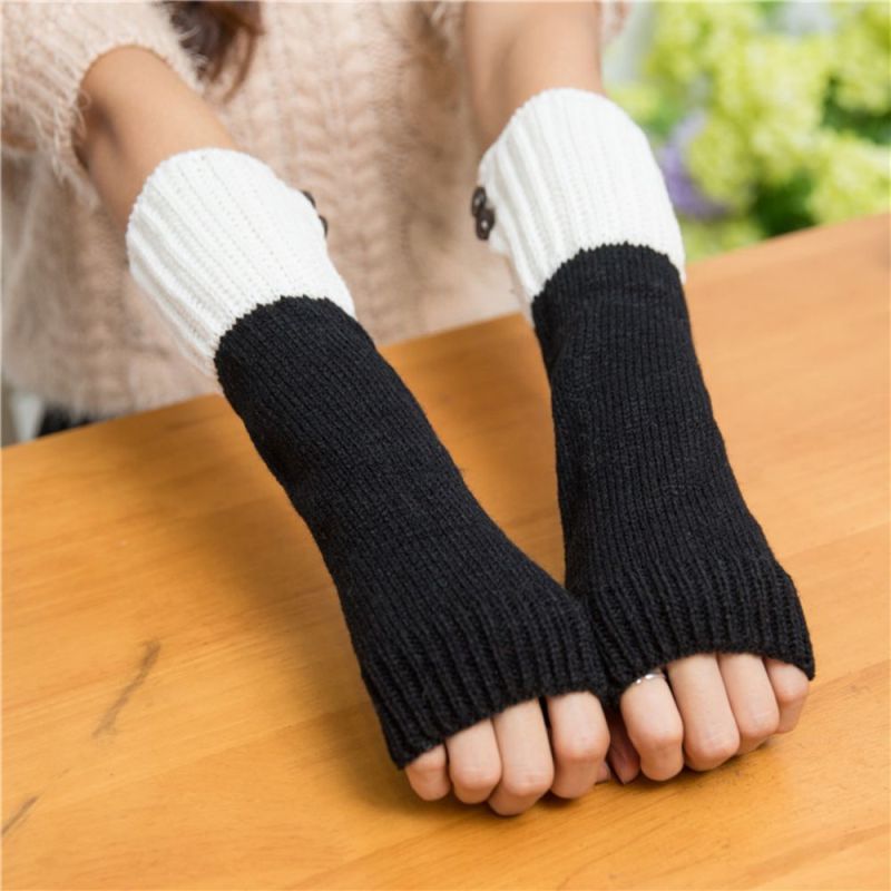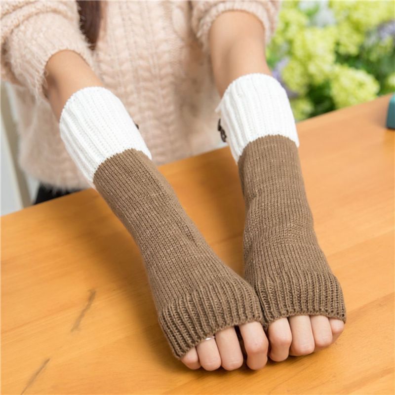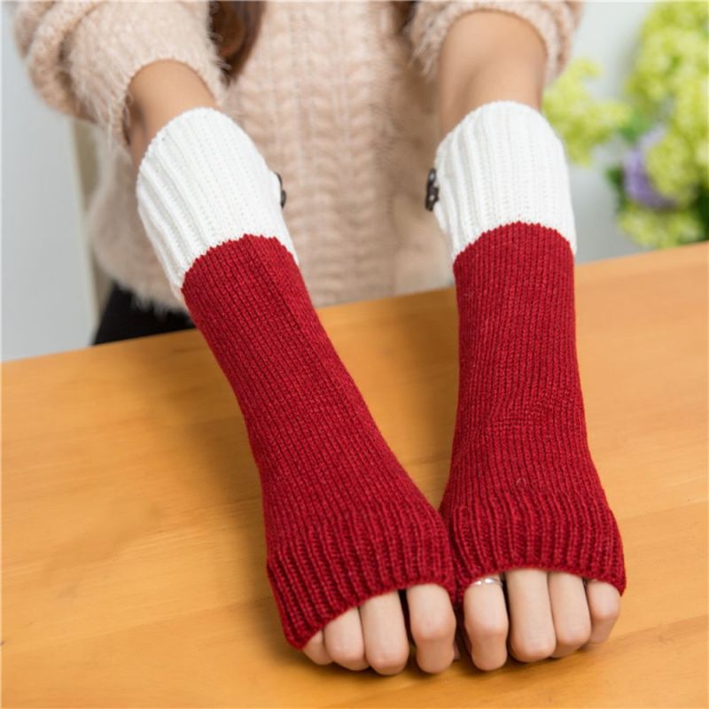 Women's Half Finger Gloves Colorblock Winter Warm Arm Cover
